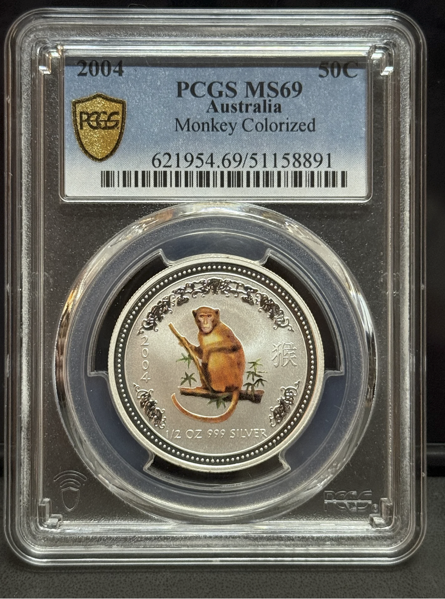 2004年澳洲-第一代猴年彩色半安士銀幣 PCGS MS69(冠軍分)